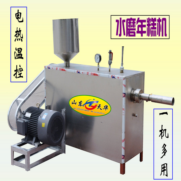 電熱自熟年糕機是天華公司技術升級的新型自熟年糕加工設備,設計合理,工藝先進,免除了傳統(tǒng)加工方法中粉碎、蒸炊、打揉等繁瑣工藝,節(jié)省能源和人力,智能化控制,采用電加熱電子自動控溫裝置蒸煮米漿,使之熟化,再由螺旋攪龍把熟化的米漿揉壓勻質并通過模具擠出定型,出機即為熟品,可以生產不同規(guī)格的方形、圓形、異形年糕,手指年糕等,生產的年糕外觀潔白光滑、口感細膩爽滑,這種高品質年糕,不僅可內銷,更可大量出口,還同樣適用于生產桂林米粉、云南米粉、米豆腐、堿粑等,還可以各種雜糧淀粉為原料,生產粉絲、粉條等。