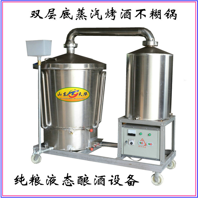 天華新型蒸汽式釀酒設(shè)備設(shè)計(jì)新穎,外形美觀,由加熱裝置,蒸鍋,蒸汽水箱,導(dǎo)氣管、冷卻器組成,與物料接觸部分采用不銹鋼材料焊接而成,不會(huì)產(chǎn)生對(duì)人體有害的鉛、鋁等物質(zhì),耐酸堿腐蝕使用壽命長(zhǎng)。